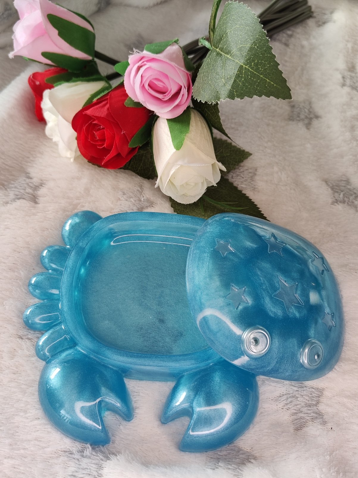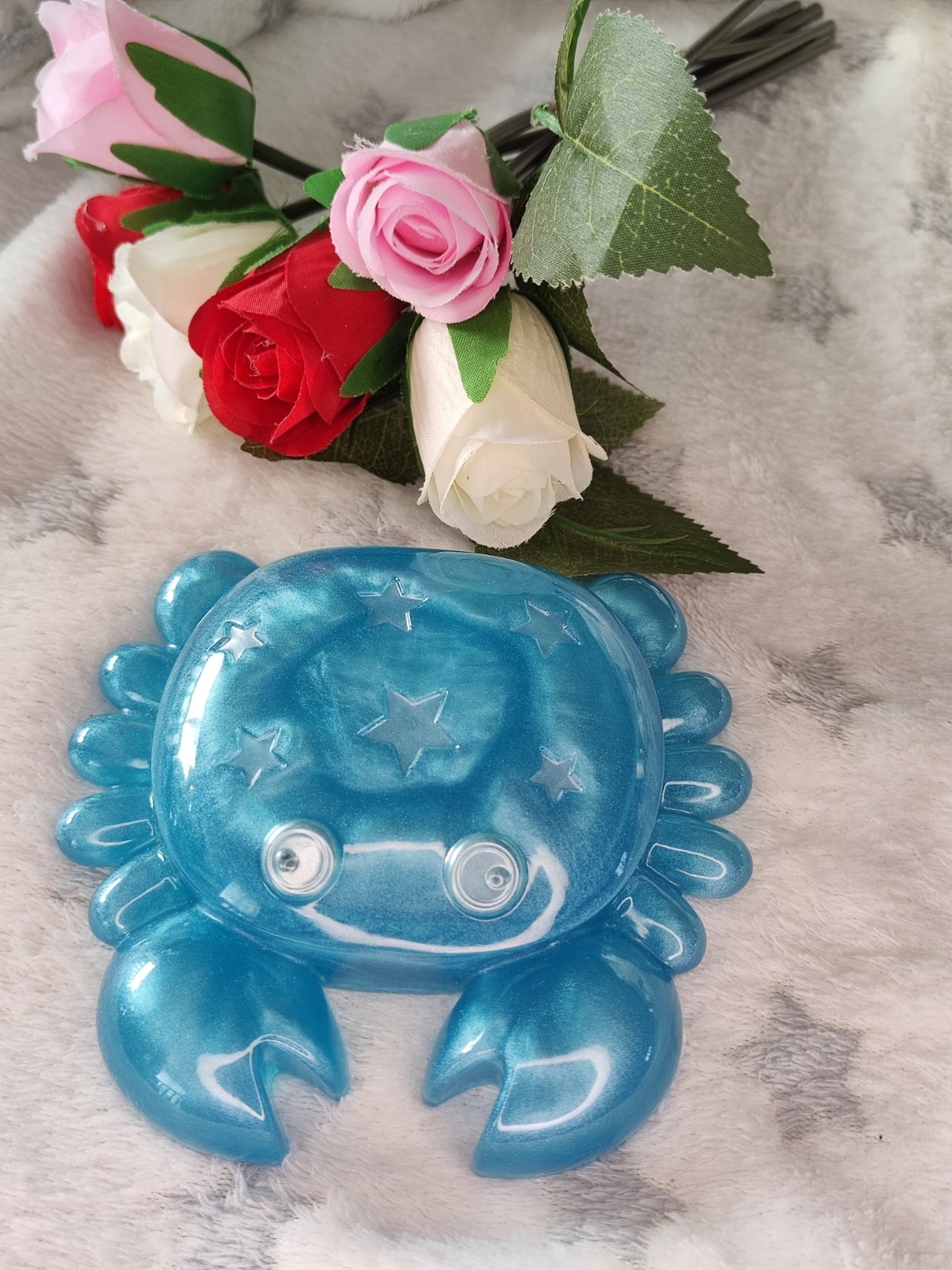 Ajoutez une touche d’élégance et de douceur à votre intérieur avec cette magnifique boite en forme de crabe en résine, façonnée à la main. Cette merveille bleue est non seulement une œuvre décorative unique, mais aussi un objet pratique grâce à sa forme pouvant servir de vide-poche ou de porte-bijoux.