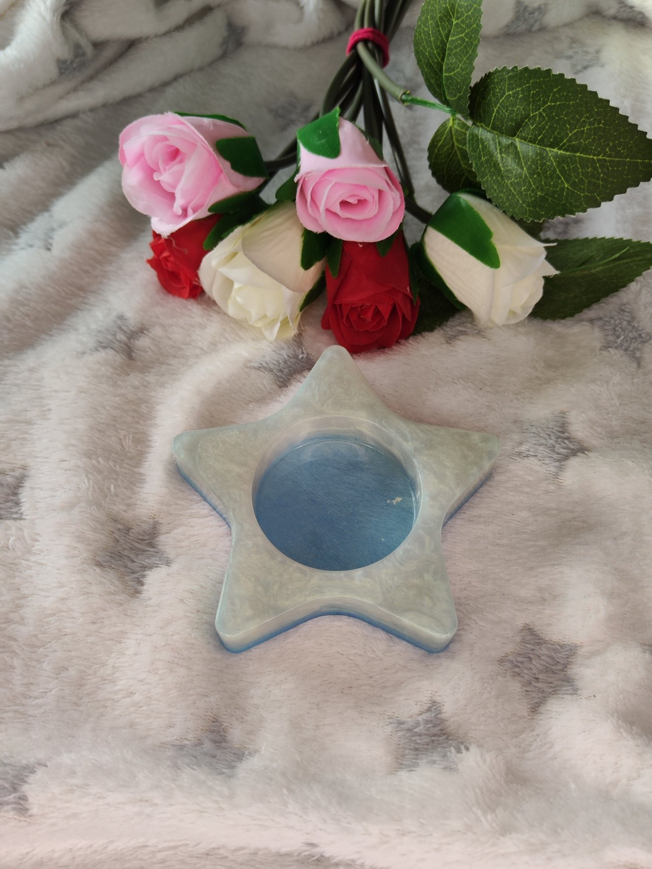 Ajoutez une touche d’élégance et de douceur à votre intérieur avec cette magnifique étoile en résine, façonnée à la main. Cette merveille blanche et bleue est non seulement une œuvre décorative unique, mais aussi un objet pratique grâce à sa forme pouvant servir de bougeoir pour bougie chauffe-plat led, vide-poche ou de porte-bijoux.