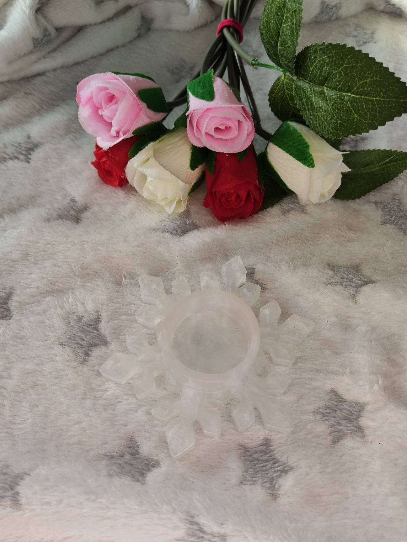 Bougeoir flocon pointu blanc pour bougie led – Fabrication artisanale unique en résine epoxy