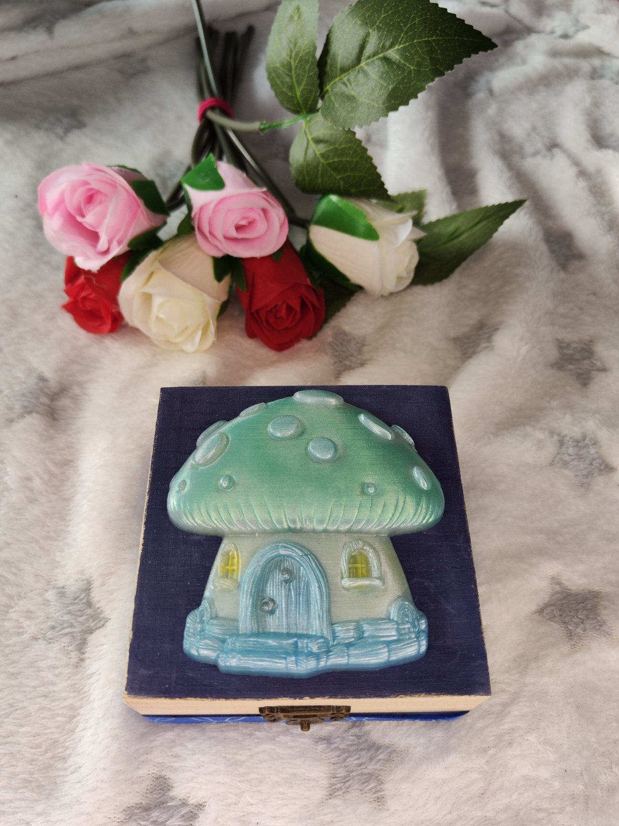 Ajoutez une touche d’élégance et de douceur à votre intérieur avec ce magnifique coffret et son champignon en résine, façonné à la main. Cette merveille est non seulement une œuvre décorative unique, mais aussi un objet pratique grâce à sa forme pouvant servir de vide-poche ou de porte-bijoux.