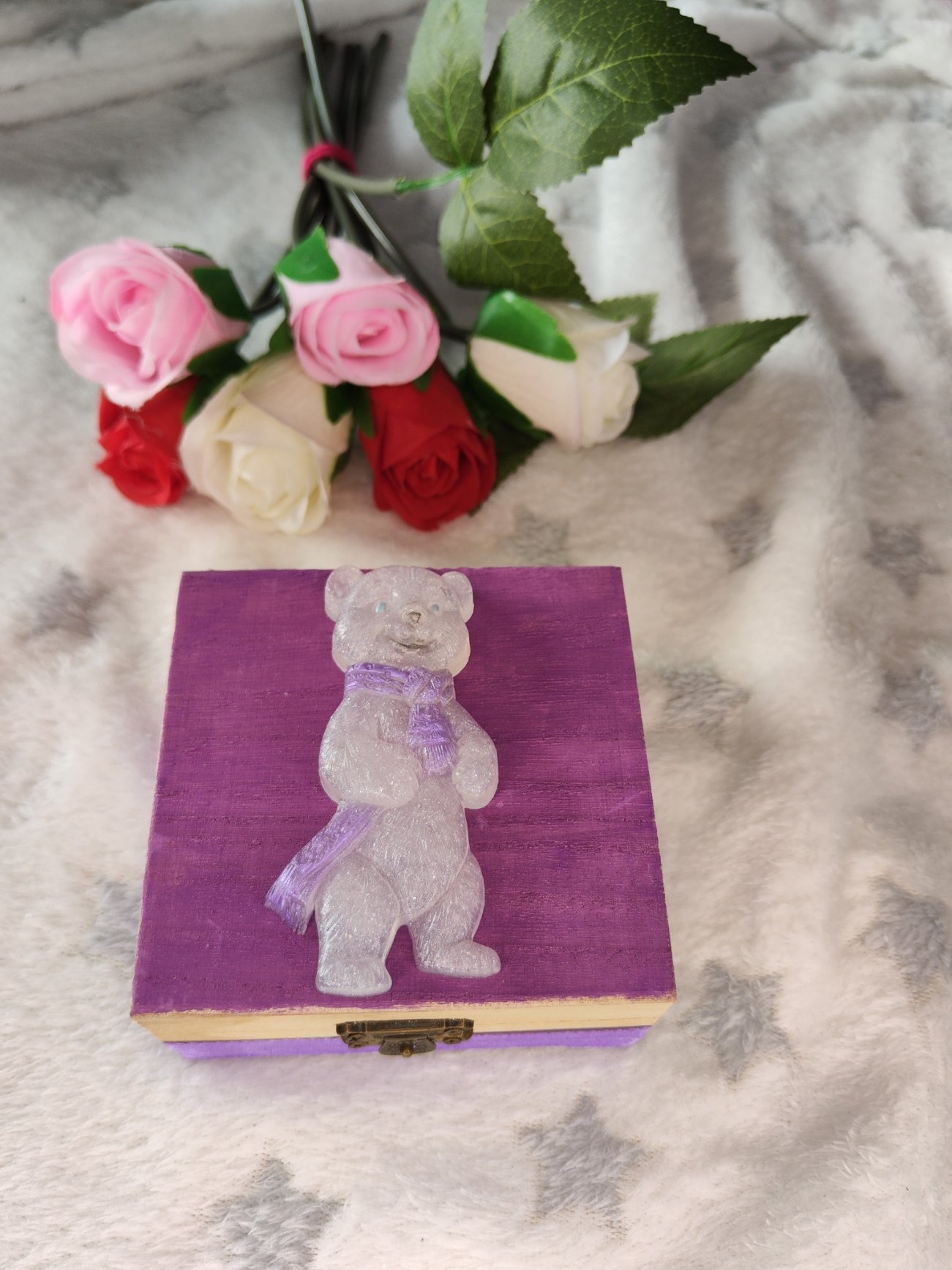 Ajoutez une touche d’élégance et de douceur à votre intérieur avec ce magnifique coffret et son ours en résine, façonné à la main. Cette merveille est non seulement une œuvre décorative unique, mais aussi un objet pratique grâce à sa forme pouvant servir de vide-poche ou de porte-bijoux.