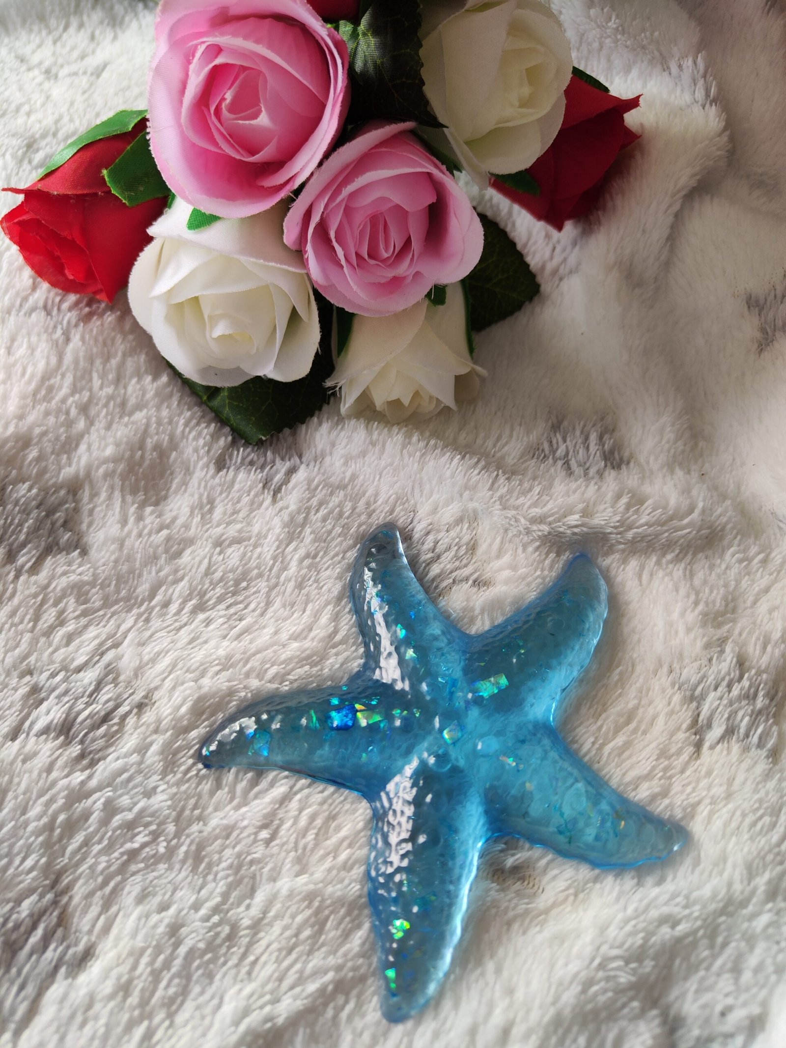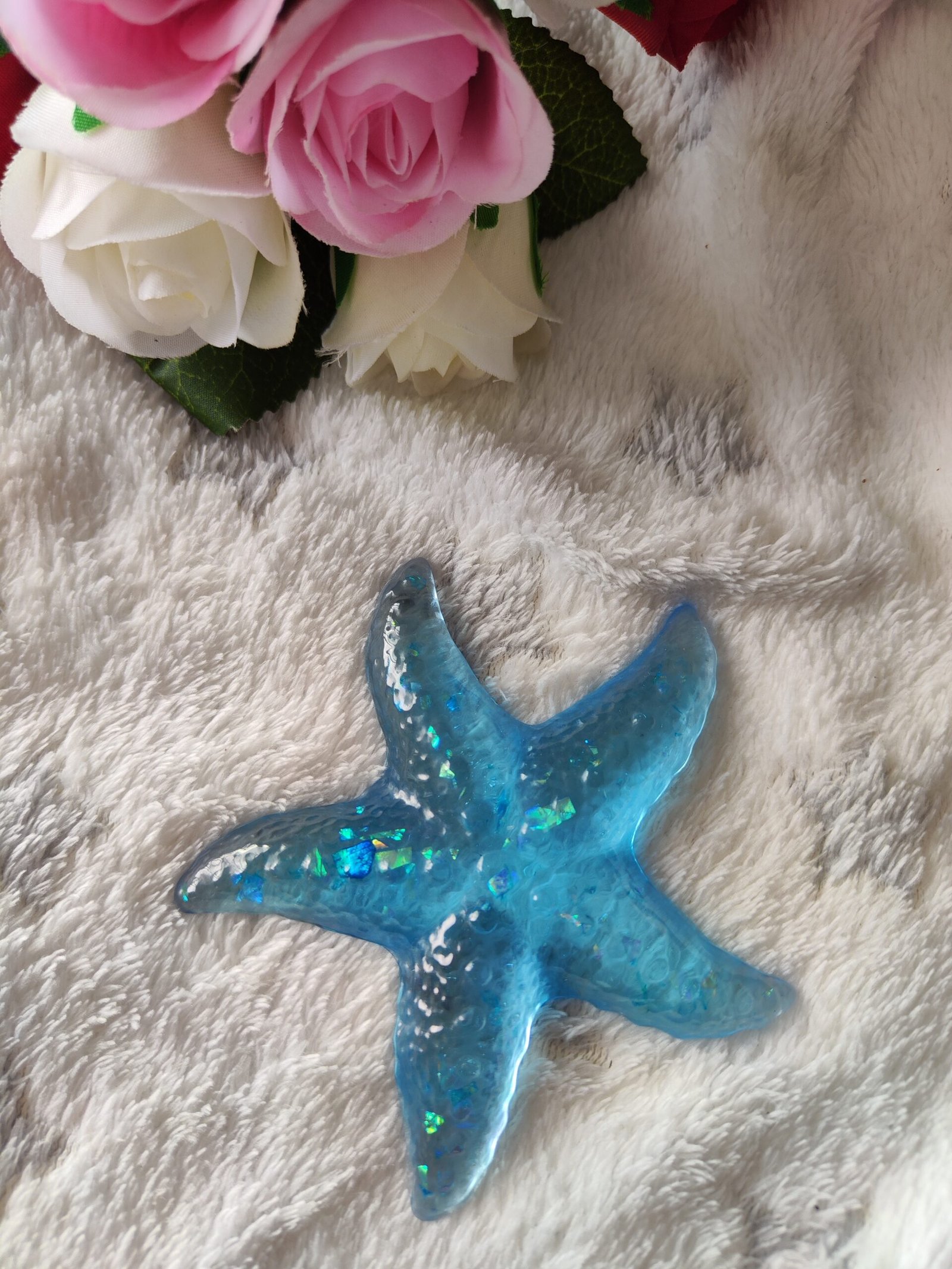 Ajoutez une touche de douceur à votre intérieur avec cette magnifique étoile de mer, façonnée à la main. Cette merveille bleue est une œuvre décorative unique.