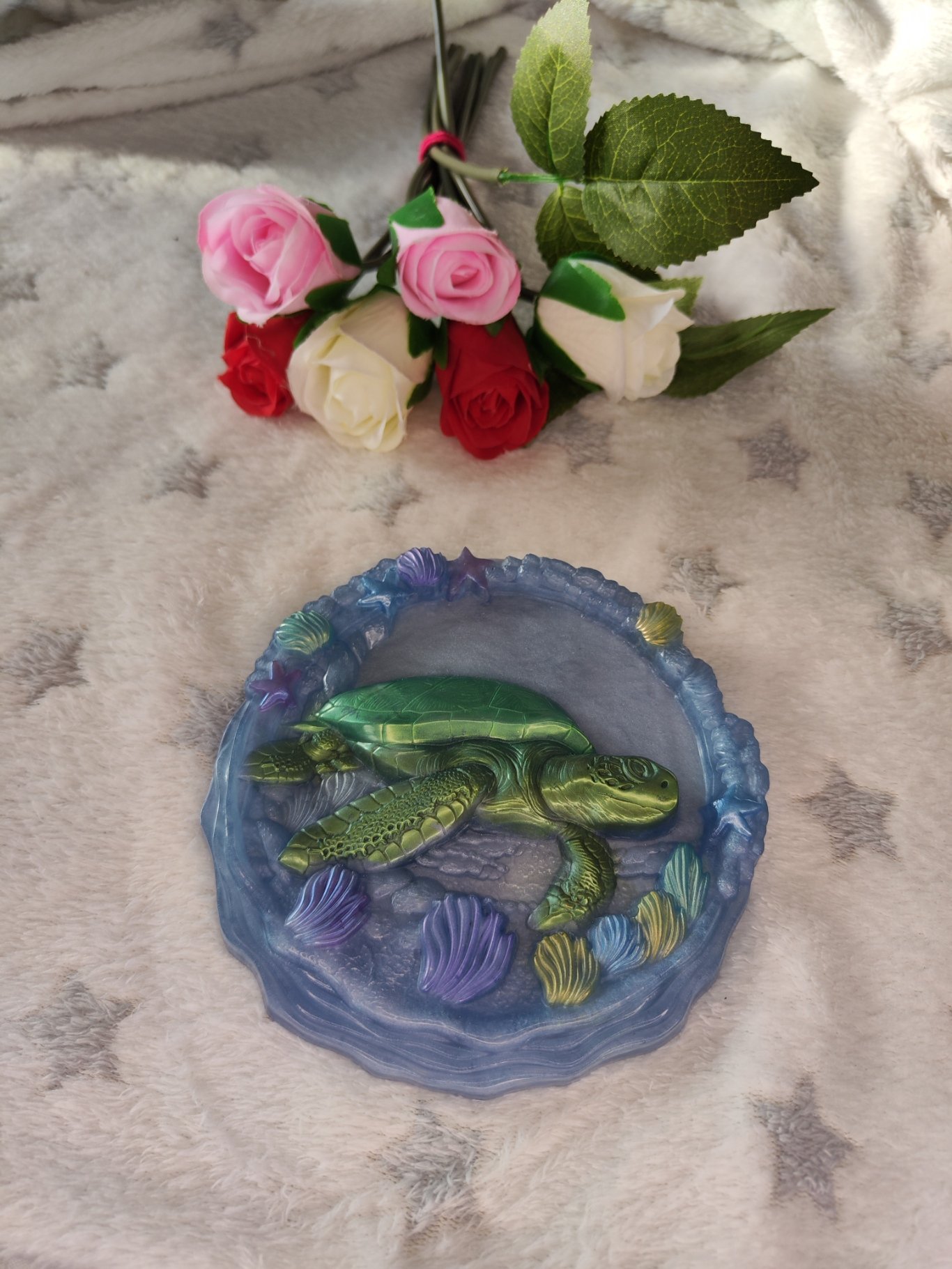 Médaillon tortue marine- Fabrication artisanale unique en résine epoxy